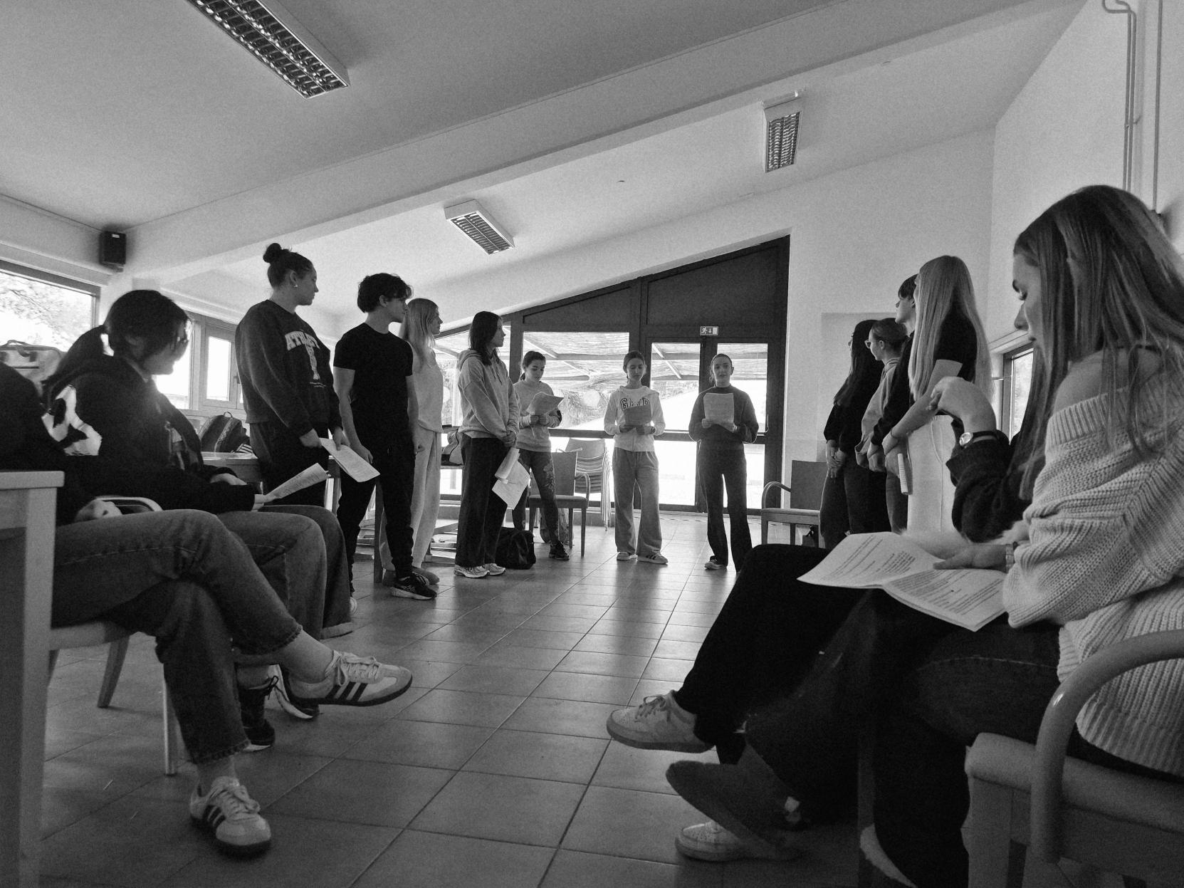 Proti obali smo se z avtobusom odpravili zgodaj zjutraj. Ko smo prispeli v zdravilišče, smo se takoj lotili vaj. Igralci smo se odpravili k morju, kjer smo najprej prebrali scenarij in si razdelili vloge. Glasbeniki so medtem vadili v dvorani, dokler ni nastopil čas za kosilo. Po kosilu smo imeli nekaj prostega časa za druženje, nato pa so ponovno sledile vaje.