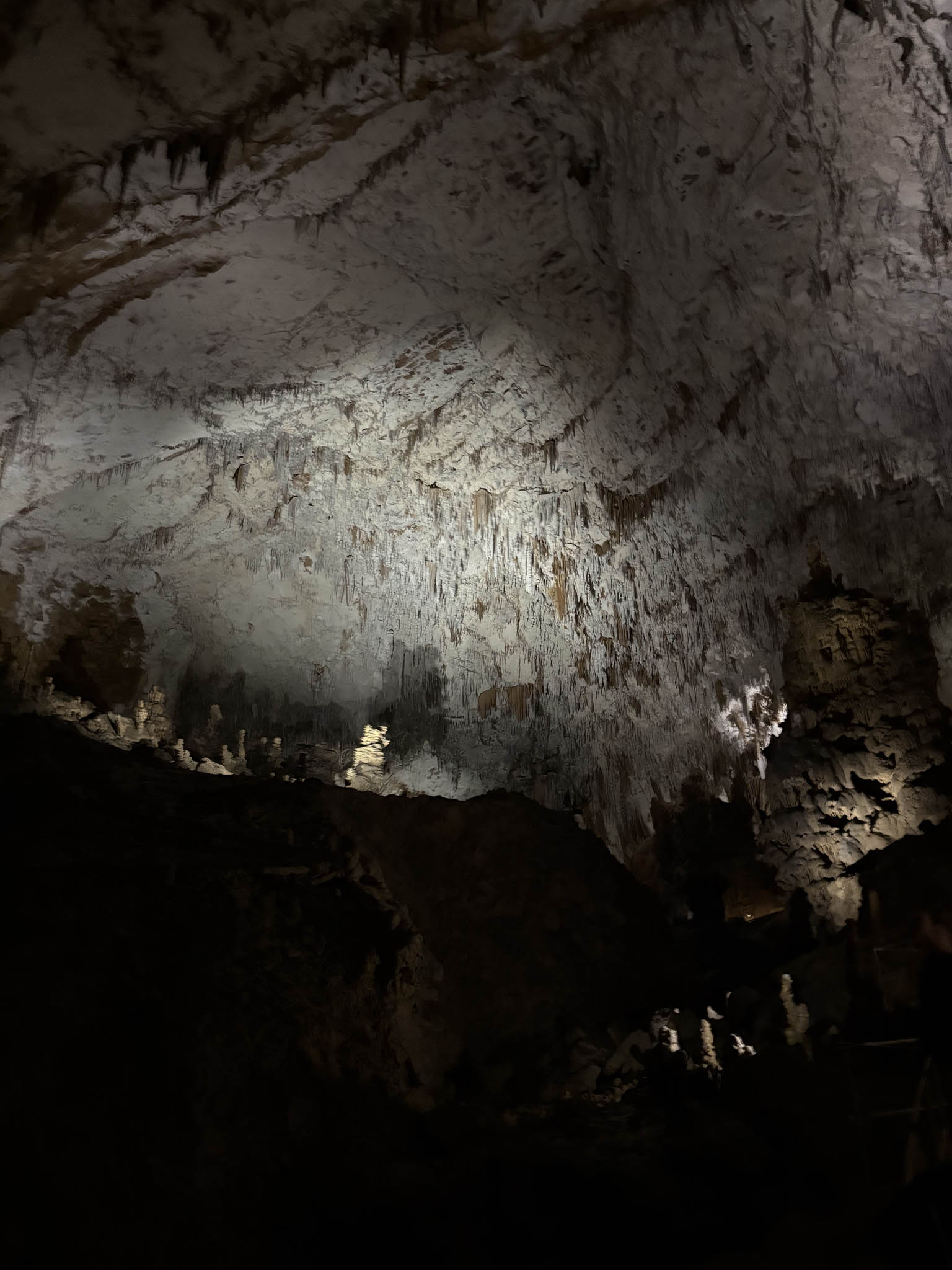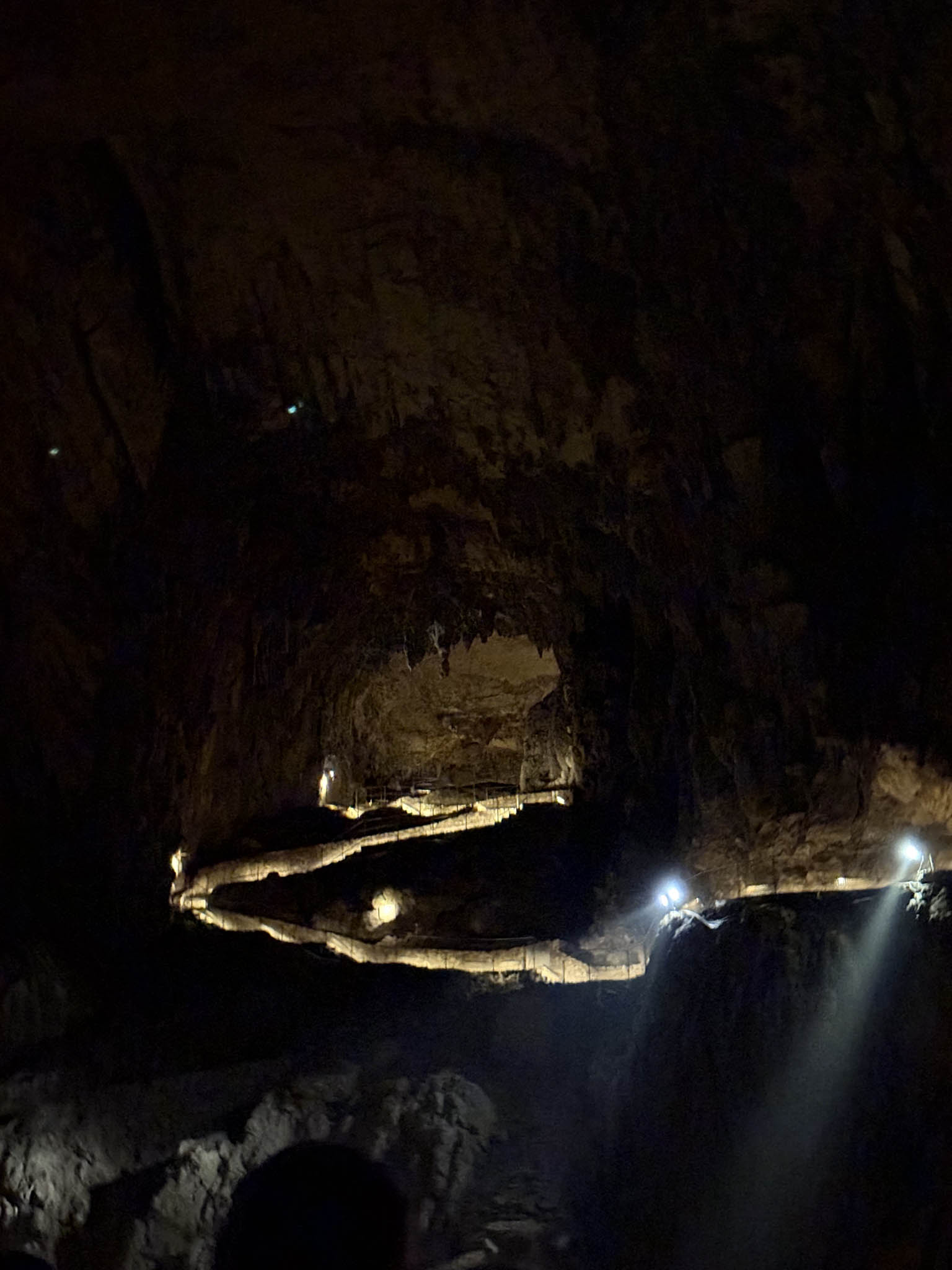Ko smo prispele do Škocjanskih jam, je sledil prvi del ekskurzije, ki je bil namenjen ogledu podzemlja. V spremstvu vodnika smo se spustile v jame, kjer smo že ob prvih korakih začutile hladnejši zrak in vlago. Posebej nas je navdušila ogromna podzemna dvorana, ki velja za eno največjih v Evropi. V njej teče reka Reka, ki velja za krasotico jamskega sveta. Po zanimivem in poučnem ogledu smo imele čas za malico. Usedle smo se na klopce v naravi, si odpočile in delile vtise o tem, kar smo pravkar videle.