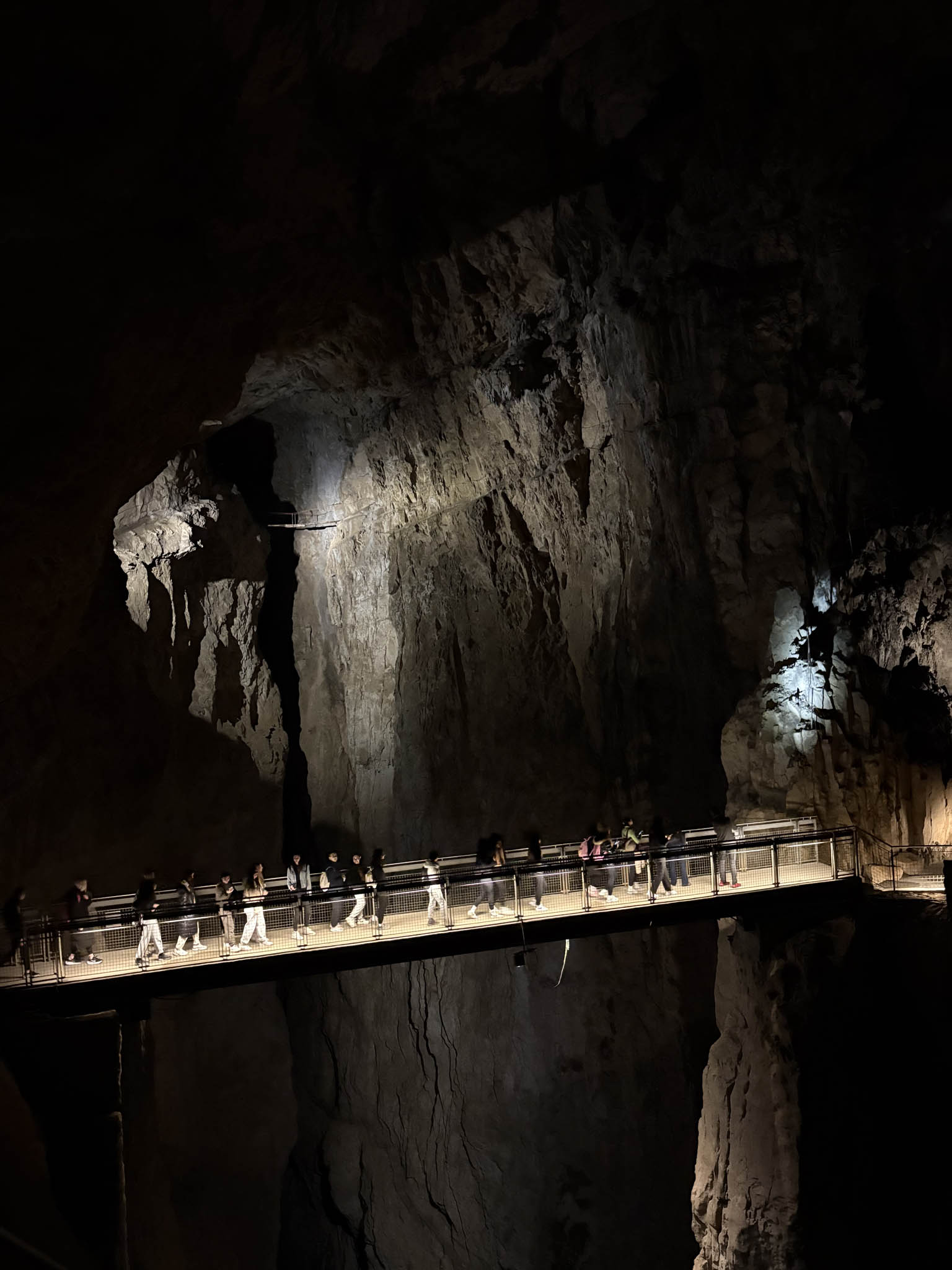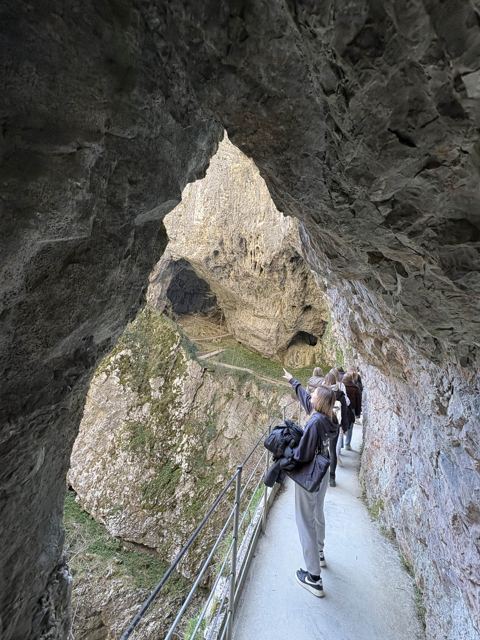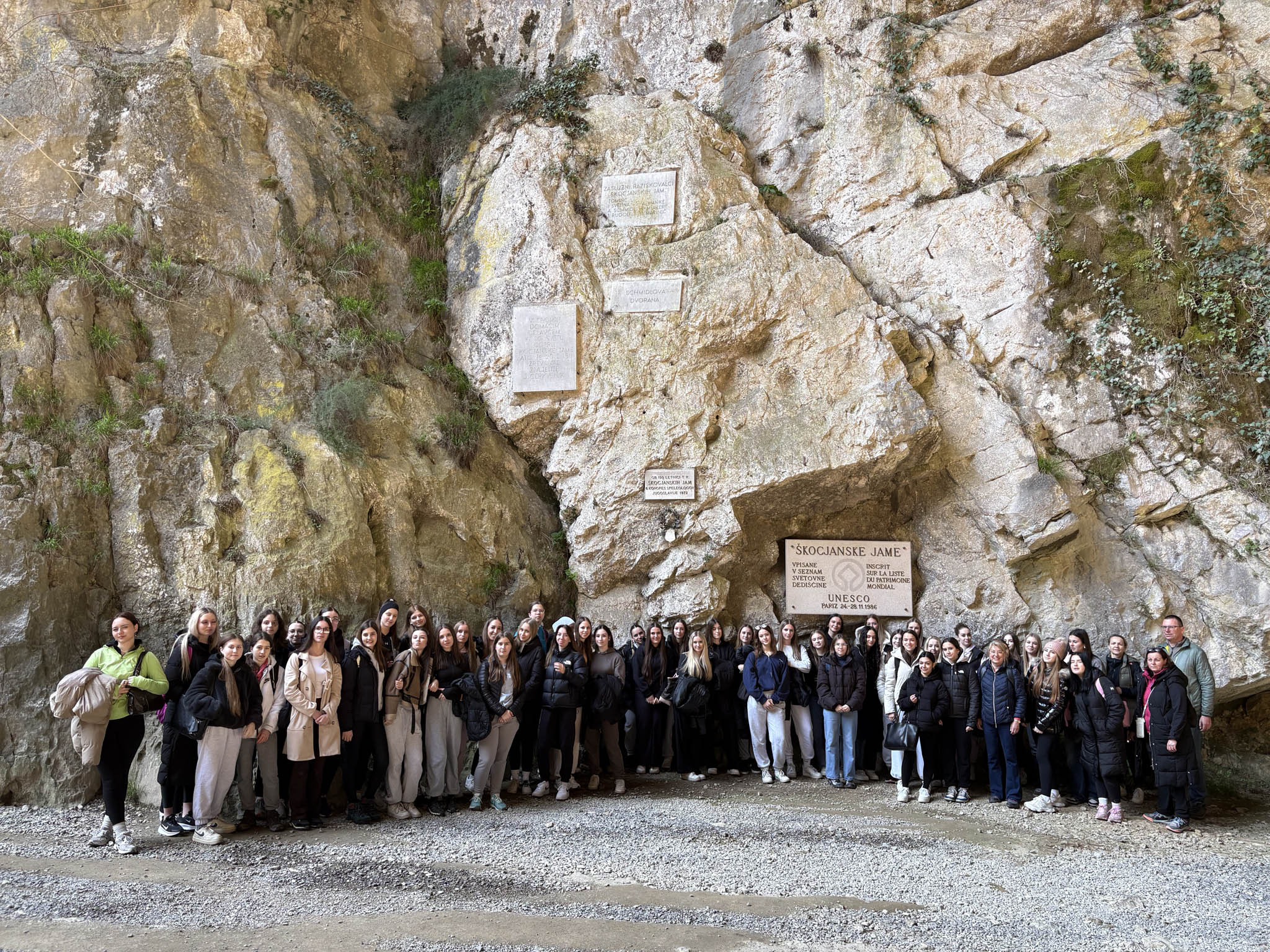 V ponedeljek, 23. 3. 2026, smo se dijakinje 2. Ka in Kb odpravile v Škocjanske jame ter izvedele veliko novega. Zgodaj zjutraj smo se zbrale na avtobusni postaji v Ljubljani, kjer smo polne pričakovanj vstopile na avtobus. Vožnja nas je vodila skozi raznoliko slovensko pokrajino vse do kraške regije, ki je znana po svojih značilnih kamnitih pojavih, vrtačah in podzemnih jamah.