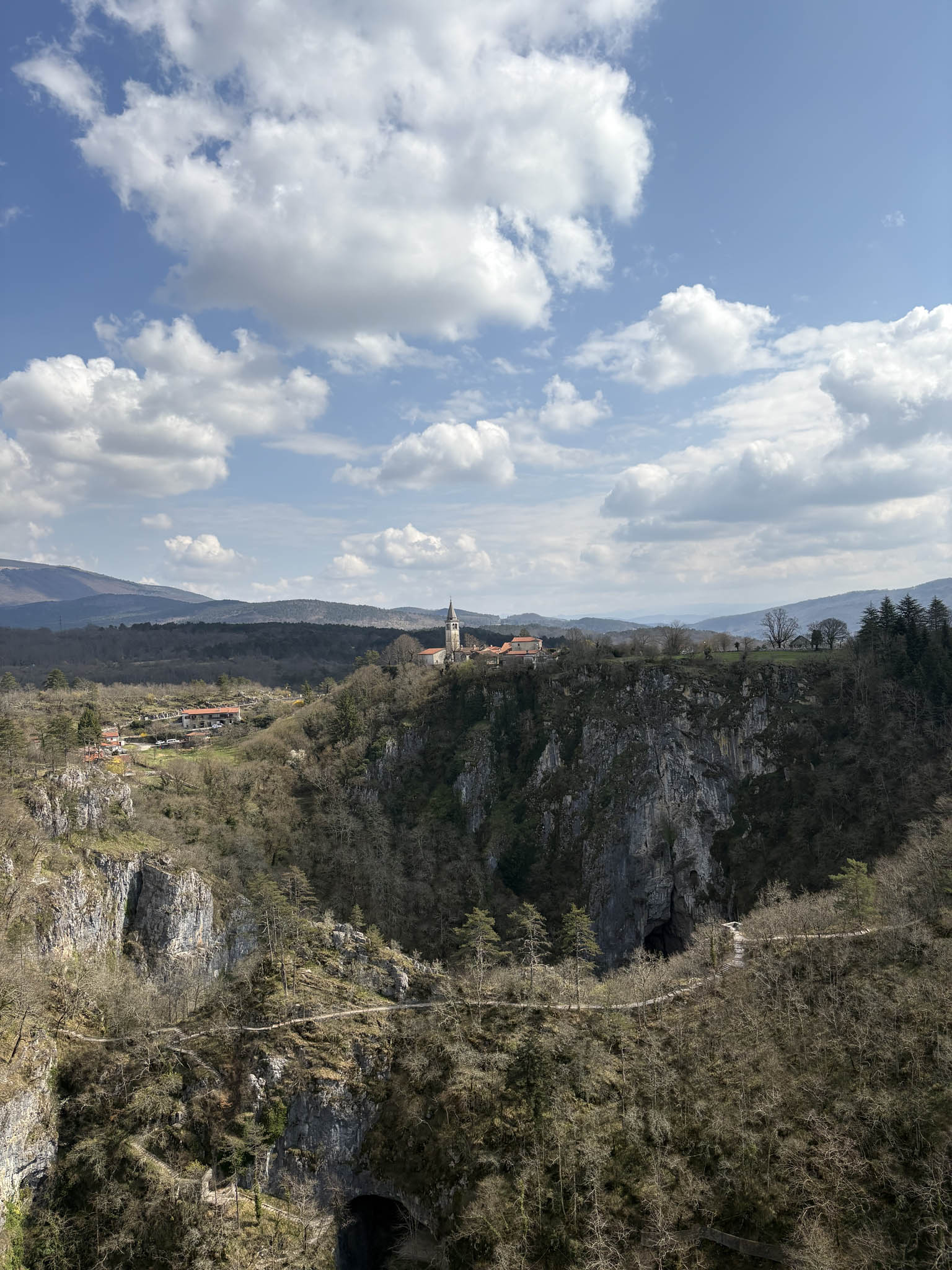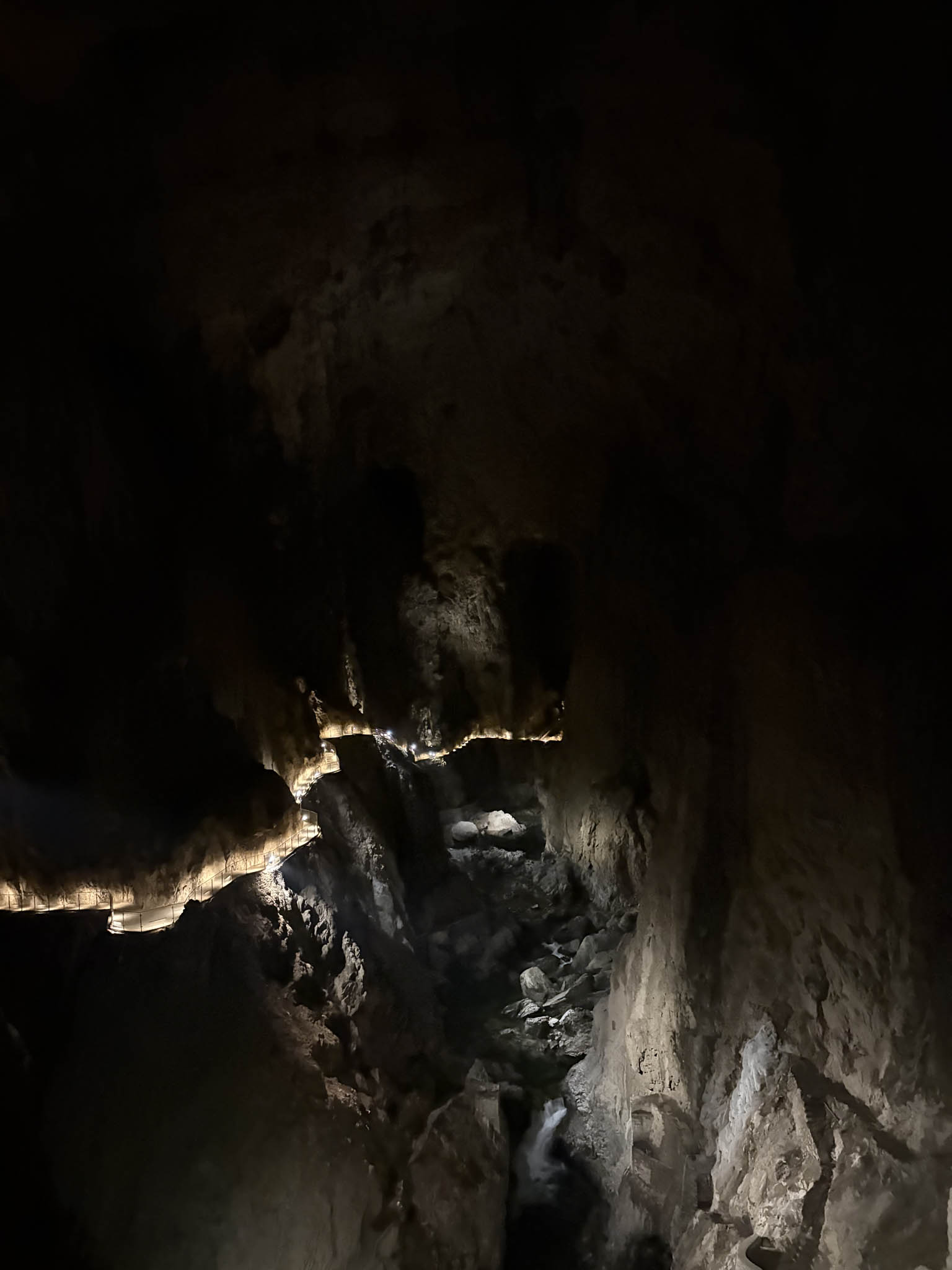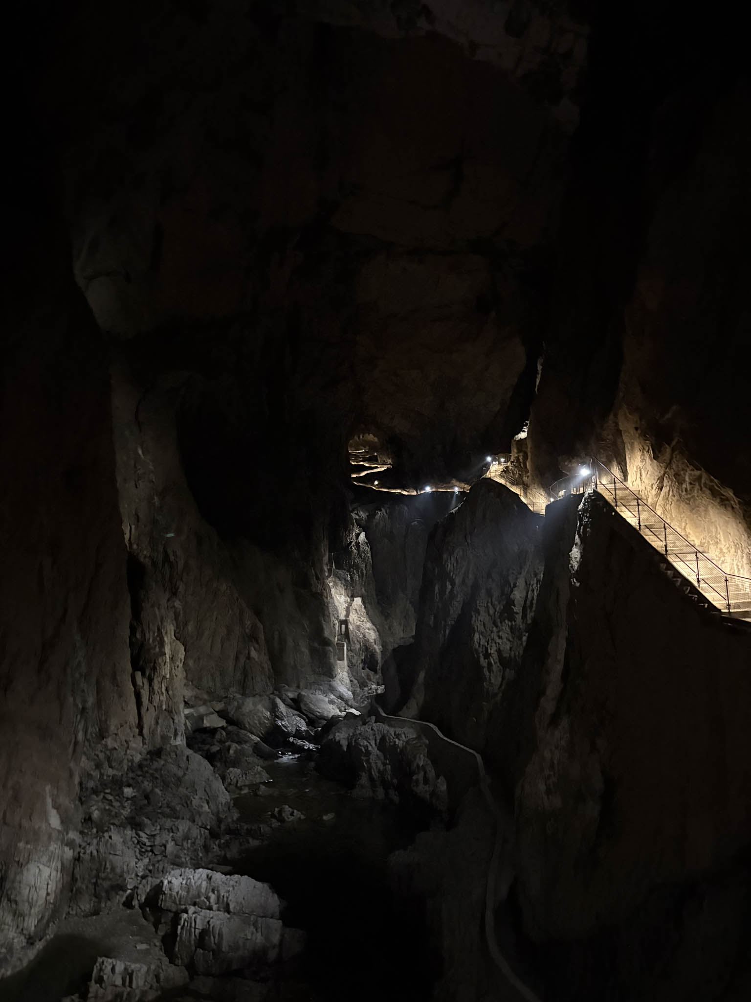 V ponedeljek, 23. 3. 2026, smo se dijakinje 2. Ka in Kb odpravile v Škocjanske jame ter izvedele veliko novega. Zgodaj zjutraj smo se zbrale na avtobusni postaji v Ljubljani, kjer smo polne pričakovanj vstopile na avtobus. Vožnja nas je vodila skozi raznoliko slovensko pokrajino vse do kraške regije, ki je znana po svojih značilnih kamnitih pojavih, vrtačah in podzemnih jamah.